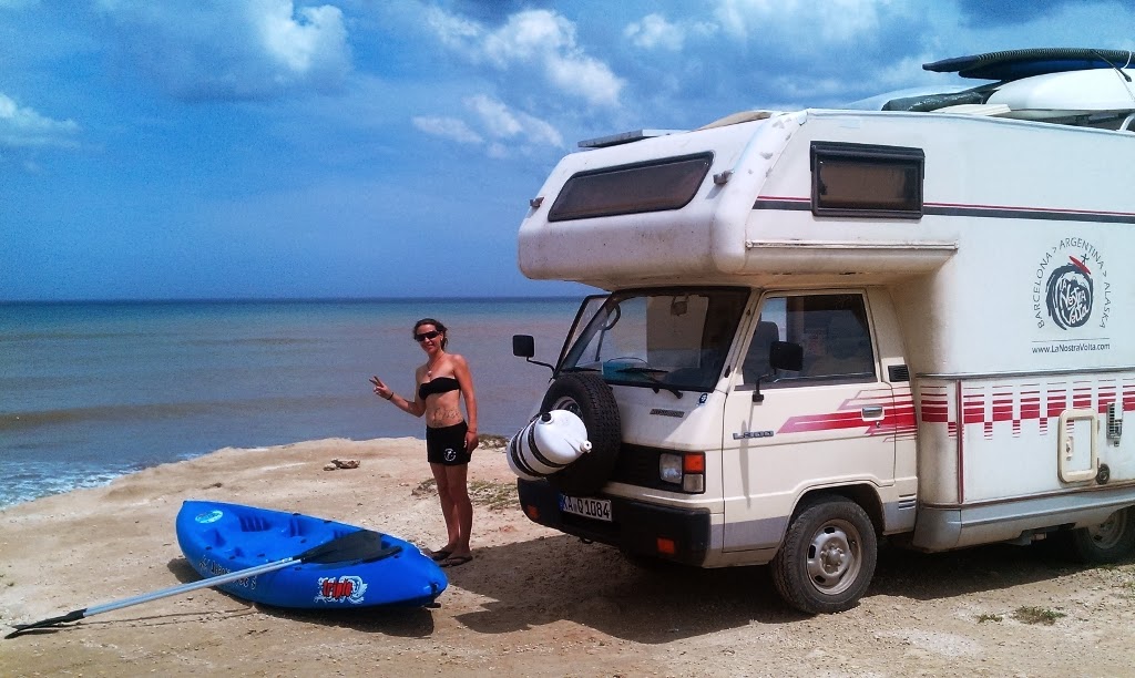 Esta semana los viajeros cruzaron de Uruguay a Argentina por el puente internacional de Fray-Bentos, manejando con su casa rodante hasta la metrópolis de Buenos Aires donde por sorpresa fueron obsequiados por la compañía de Atlantik-kayak con un Triplo, un kayak para tres personas que les acompañara durante su aventura hasta Alaska.