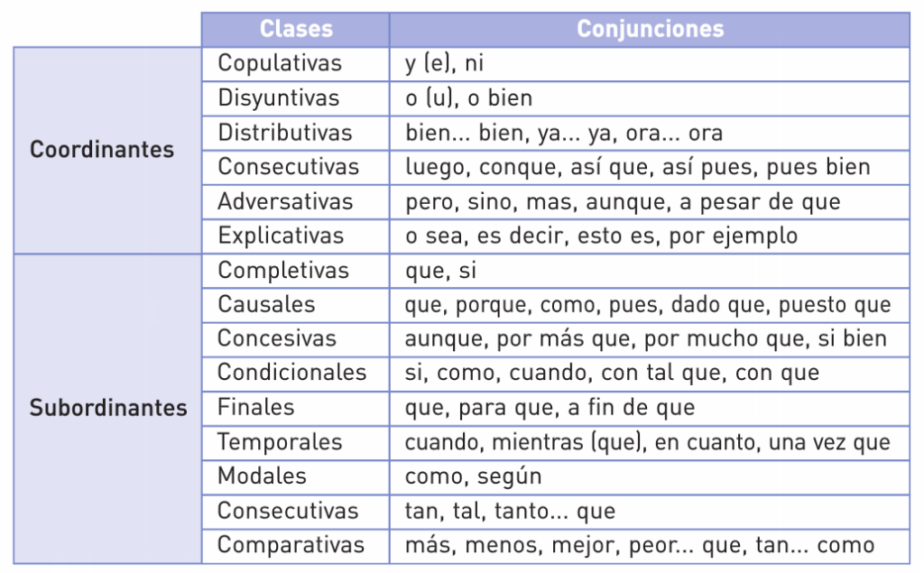 Las conjunciones establecen relaciones entre palabras u oraciones. Pueden ser coordinantes, si unen dos elementos de igual valor, o subordinantes, si establecen una relación de dependencia o jerarquía entre ellos.
