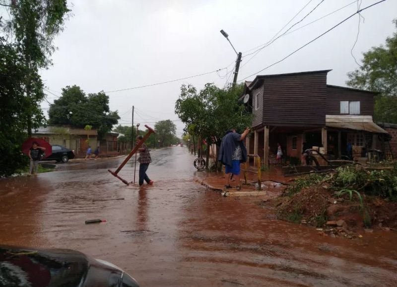 Un temporal que se desató de forma repentina en Puerto Iguazú dejó a la mitad de la ciudad sin energía por la caída de postes, árboles, voladuras de techos. Los bomberos voluntarios fueron solicitados por una gran cantidad de vecinos en la zona del barrio Santa Rosa y arribaron al lugar junto a la policía, tránsito municipal y personal de Energía de Misiones para evaluar los daños.
