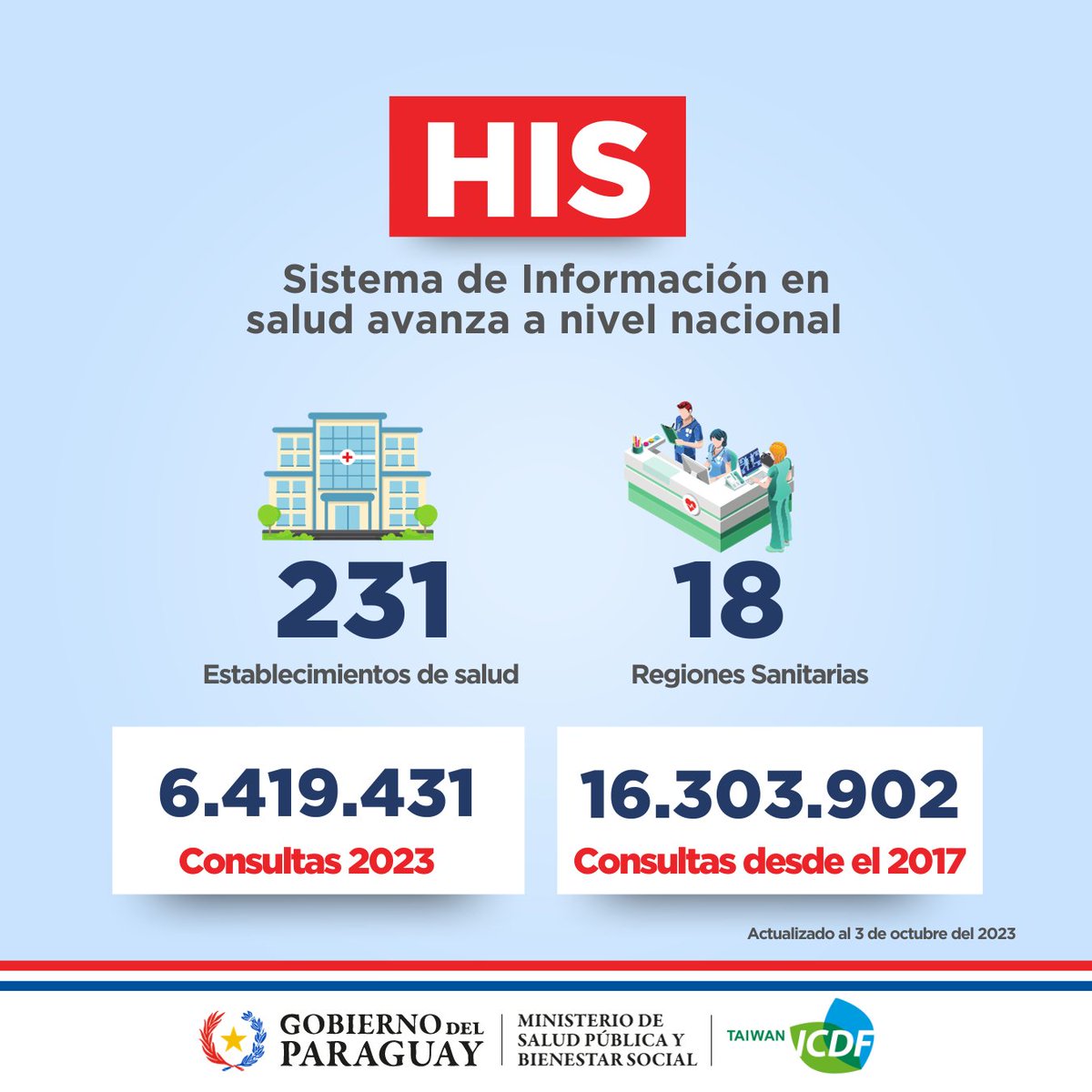 Esta transformación digital es encarada de forma conjunta entre el Ministerio de Salud Pública y Bienestar Social (MSPyBS) y la Misión Técnica de Taiwán, a través del «Proyecto para la Mejora de la Eficiencia en la Gestión de la Informática en Salud (Fase II)» y; cuenta con el apoyo del Ministerio de Tecnologías de la Información y Comunicación (MITIC), consejos de salud locales, KOICA, Itaipú, el Banco Interamericano de Desarrollo (BID) y el Banco Mundial.