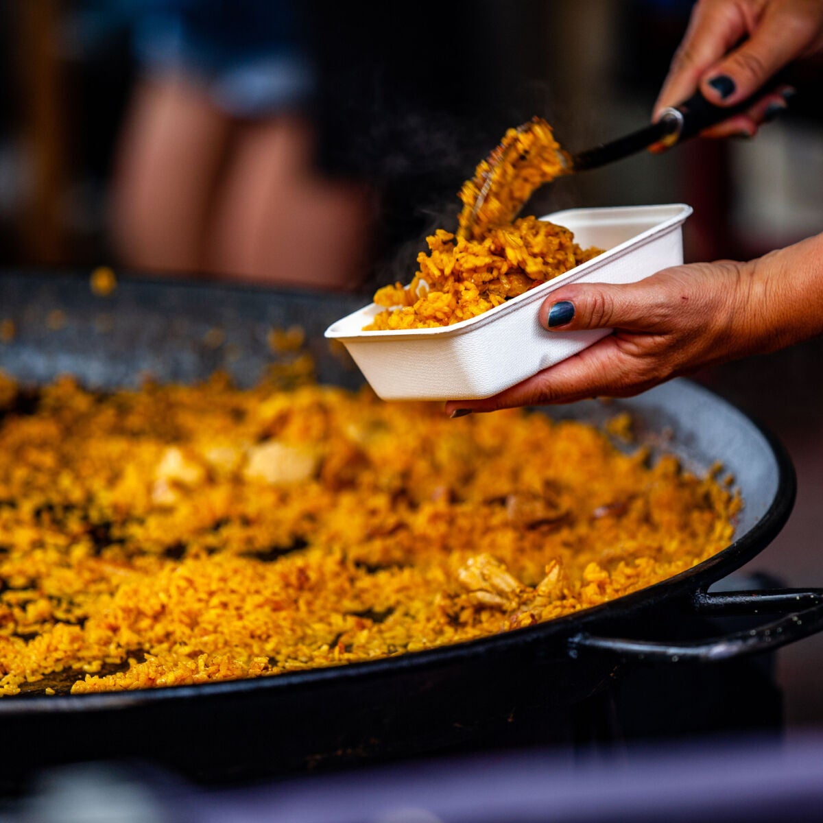 La paella es, sin duda, uno de los platos típicos de la gastronomía española y muy popular no solo en la Comunidad Valenciana sino también en restaurantes de todo el mundo. Como bien sabrás, está receta de arroz se cocina en una sartén, conocida como «paellera», ancha y con asas.