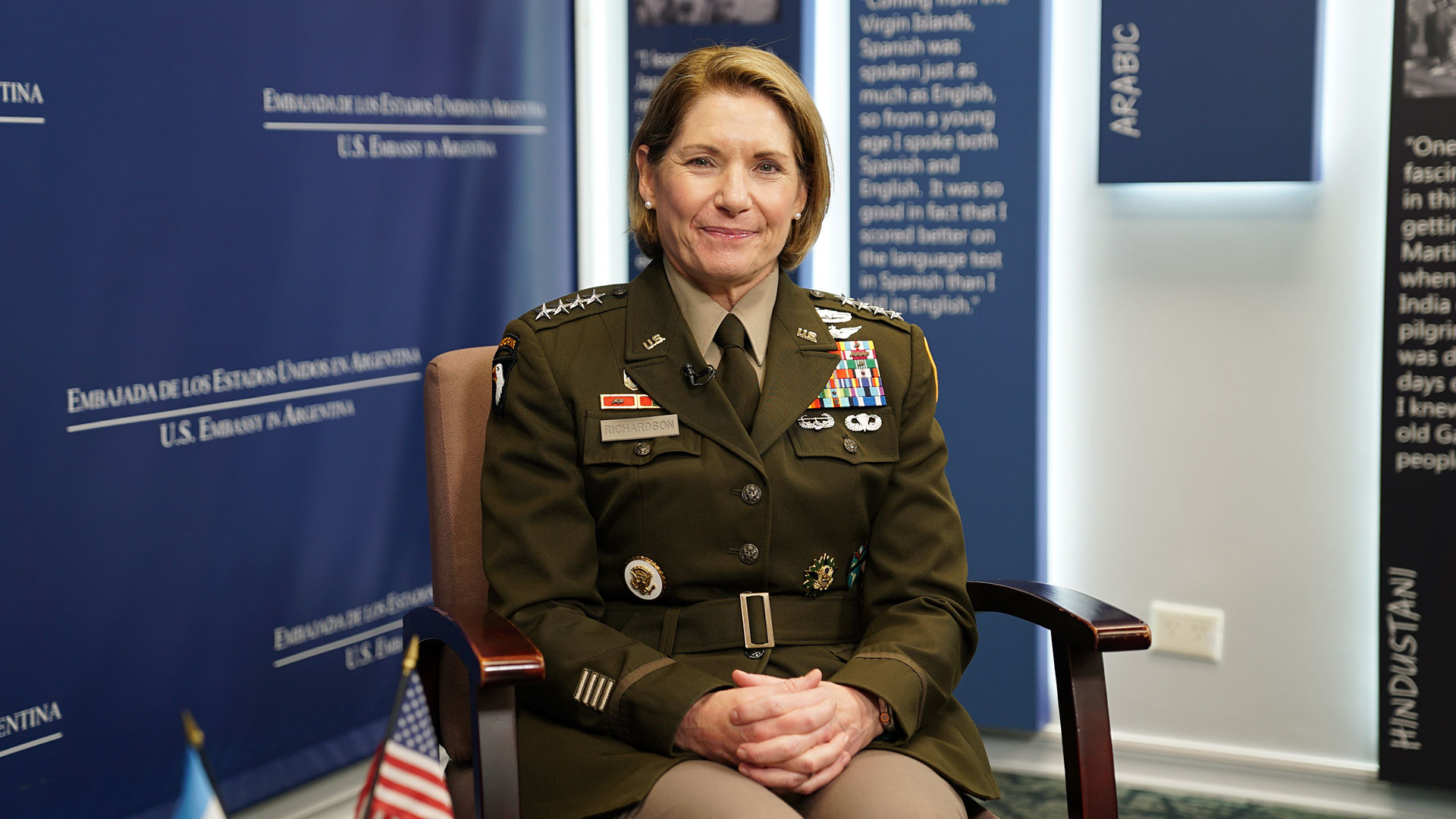 —Bueno, es mi tercera visita a Argentina. Sin embargo, es mi primera visita con la nueva administración. Así que realmente venir aquí y aprender, escuchar y conocer de primera mano cómo podemos trabajar juntos…. Nuestra asociación es de más de 200 años, 201 años de relaciones bilaterales entre Estados Unidos y Argentina. Así que… es venir aquí y ver la Argentina, con el ejército que quiere una asociación con nosotros.