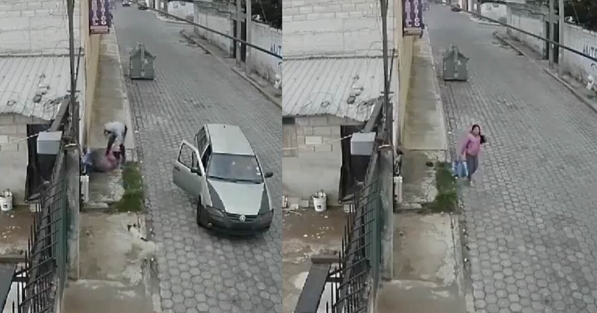 Cámaras de seguridad captaron el momento en que una mujer sufrió un violento robo en las calles de Las Frutillas y de Los Guabos, en el sector San Isidro de El Inca, al norte de Quito.