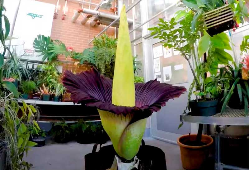 La Amorphophallus titanum, también conocida como “flor cadáver” o “pene de Titán”, es una planta que su ciclo de floración es un evento raro y muy esperado. Esta planta puede tardar entre siete y diez años en florecer por primera vez y, posteriormente, solo florece cada cuatro o cinco años. Cada floración dura apenas 48 horas, lo que aumenta su atractivo, se convierte en un fenómeno de interés tanto turístico como científico.
