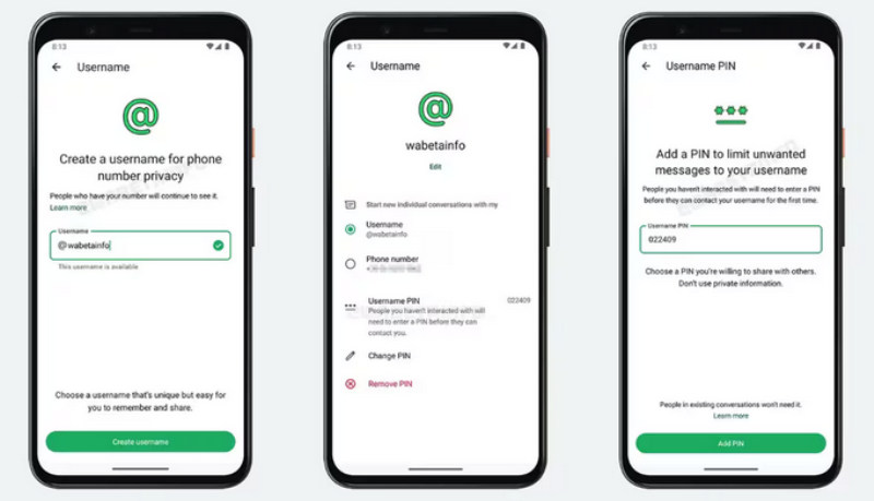 La nueva función de WhatsApp permitiría configurar un nombre de usuario y un PIN. Por ejemplo, un nombre de usuario podría ser @MariaD, y el PIN constaría de cuatro dígitos que no deben incluir información privada, como el código de verificación en dos pasos. El PIN es una función opcional que ofrece a los usuarios un mayor control sobre quién puede contactarlos.