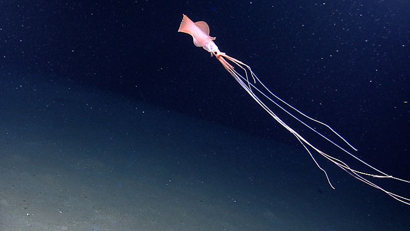 Una expedición de científicos australianos ha podido filmar a un esquivo calamar de la familia Magnapinna caminando sobre sus tentáculos, de una longitud varias veces mayor que la de su cuerpo.