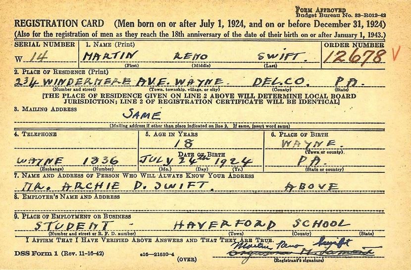 Martin Reno Swift, tío abuelo de Taylor, sirvió también en las Fuerzas Armadas de Estados Unidos como su hermano Archie, pero en el 3er Ejército y bajo el mando del General George S. Patton, Jr., oficial de alto rango que desempeñó un papel crucial en la contienda.