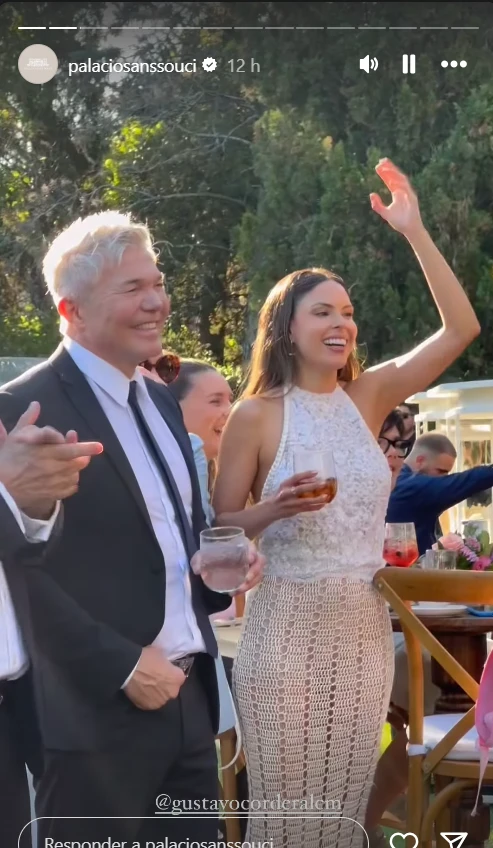 En tanto, para el final de la noche, la famosa modelo e influencer eligió cambiar su vestido con falda larga hasta el suelo por un pantalón blanco con flecos en sus costados, algo más cómodo para poder bailar con sus amigos.