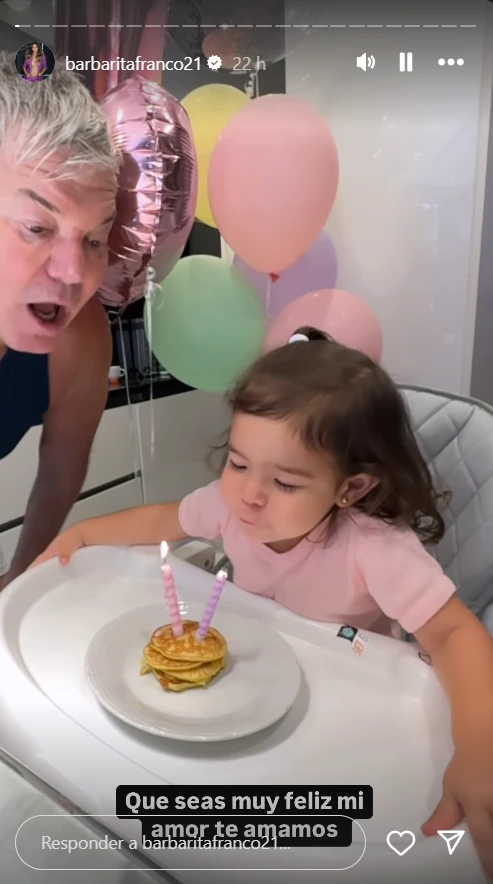 El cumpleaños de Sarah Burlando, la primer hija de Barby Franco y Fernando Burlando, comenzó del modo más tierno y soñado posible: con la nena de 2 años soplando las velitas de una mini torre de pancakes en su sillita de comer junto a su padre. «Que seas muy feliz mi amor, te amamos», escribió su mamá sobre ese posteo que subió a sus redes.