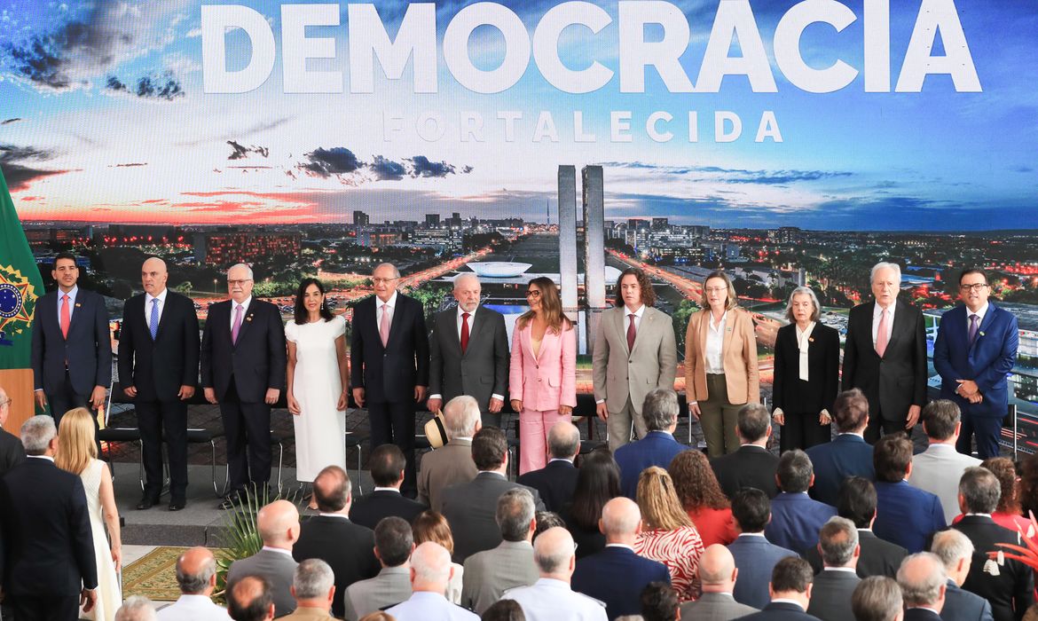 La frase inicial alude a la película Aún estoy aquí (2024), dirigida por Walter Salles y protagonizada por Fernanda Torres —ganadora del Globo de Oro—, que narra el recorrido de Eunice Paiva durante la dictadura militar tras la detención y asesinato de su esposo, Rubens Paiva, a manos del régimen. La ceremonia en el Planalto contó con la asistencia de ministros, parlamentarios, gobernadores, representantes de los Tres Poderes del Estado y comandantes de las Fuerzas Armadas, a quienes el mandatario expresó su agradecimiento.