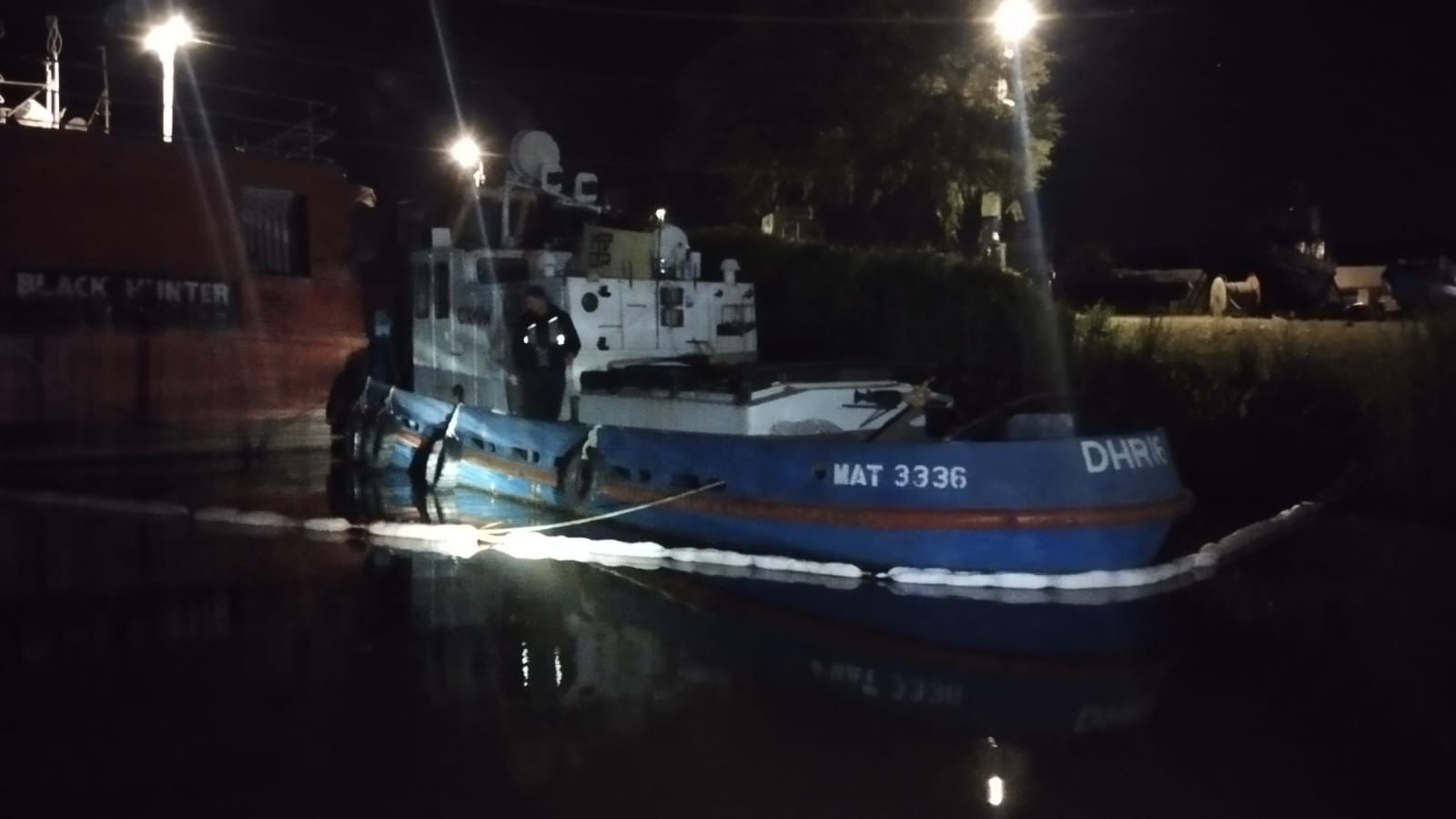 De acuerdo con un informe de la Armada Nacional, una embarcación de la Prefectura Naval (PNN 251) zarpó con un suboficial a cargo y tres tripulantes para desplegar una barrera de absorción entre el Black Hunter y el varadero, con el objetivo de contener la contaminación. Sin embargo, el informe señala que no fue posible constatar el origen exacto del derrame en el momento de la intervención. El vocero de la Armada Alejandro Perez señaló que el impacto ambiental sería «moderado».