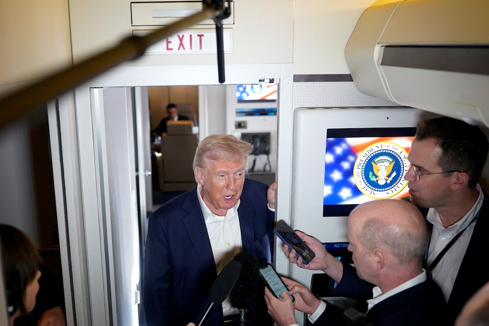 El presidente de Estados Unidos, Donald Trump, mientras desembarca del Air Force One en el Aeropuerto Internacional de Palm Beach, Florida (REUTERS/Nathan Howard)Por otro lado, antes de viajar a Florida, Trump autorizó al Ejército de EEUU a tomar control sobre terrenos federales en la frontera sur, con el fin de avanzar en su política migratoria.