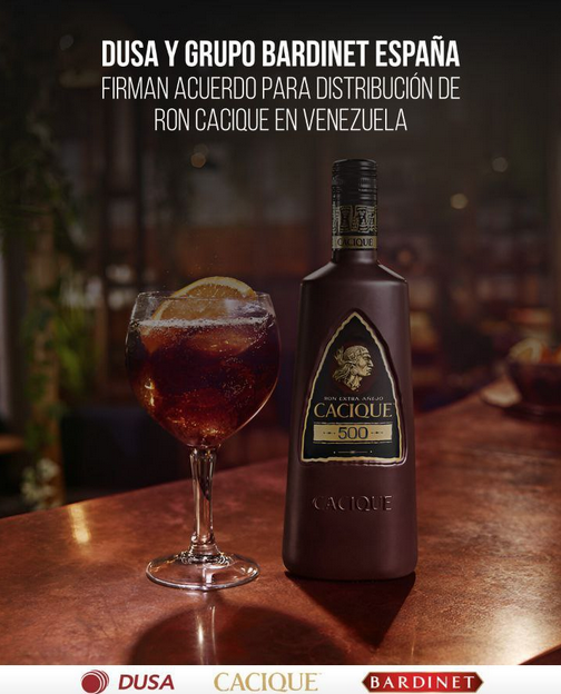 Destilerías Unidas S.A. (DUSA) y el Grupo Bardinet España anunciaron una importante alianza estratégica en la que se asegura la distribución de Ron Cacique en Venezuela, con el fin de fortalecer su legado en la historia de los rones elaborados en Venezuela.