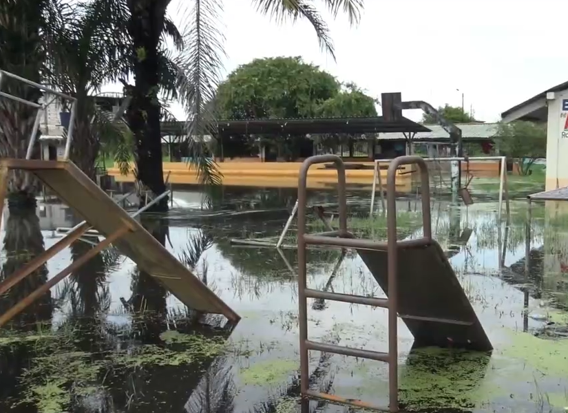 En la Escuela Fiscal Jaime Hurtado Gonzales, en el cantón Durán (Guayas), las canchas, áreas de juegos, bancas, baños y varias aulas —que deberían estar listas para recibir a cerca de 1 000 estudiantes— permanecen inundadas y deterioradas.