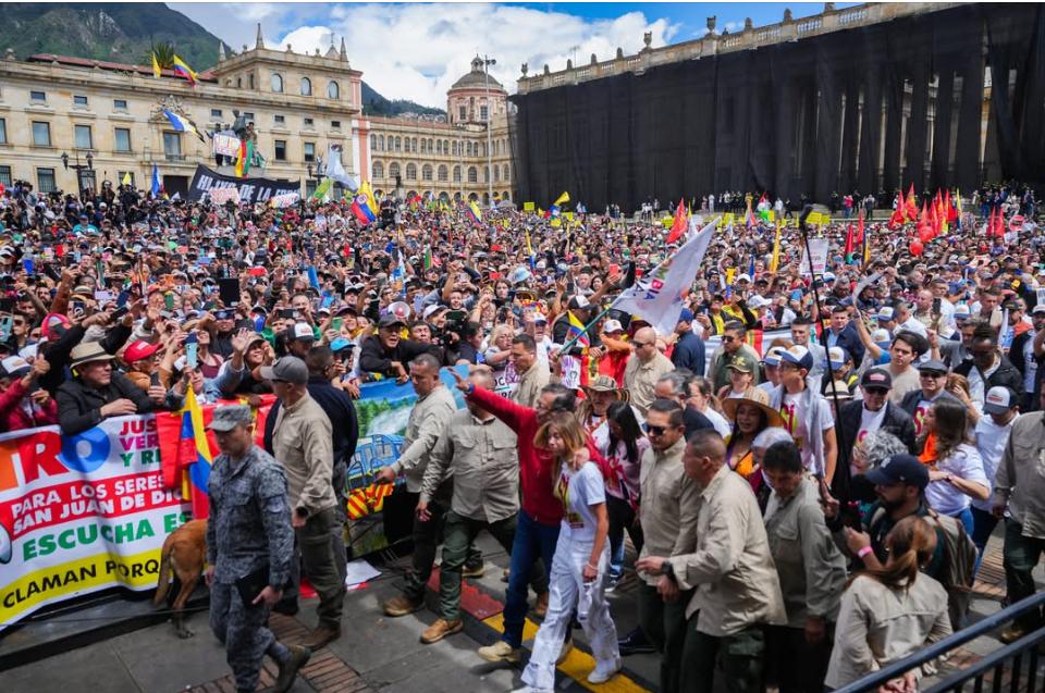 Lejos de proponer una respuesta confrontativa o desbordada, el presidente delineó con precisión el tipo de movilización que promueve. Hizo un llamado urgente a las fuerzas vivas del país —centrales obreras, movimientos campesinos, juntas de acción comunal, colectivos juveniles barriales, organizaciones de mujeres y pueblos indígenas— a coordinarse y reagruparse para definir, de manera pacífica pero firme, los próximos pasos. “Propongo de inmediato la reunión de las centrales obreras, la coordinación campesina, las juntas de acción comunal, los comités juveniles barriales y el movimiento indígena para dar el paso siguiente”, sostuvo, apelando a la historia de los movimientos sociales que han sostenido las grandes reformas de América Latina.