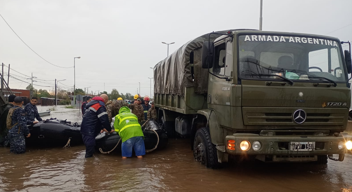 Este sábado, en horas de la mañana, la ayuda ya se coordina desde el Comando Conjunto de Zona de Emergencia Buenos Aires Norte, conducido por el Estado Mayor Conjunto de las Fuerzas Armadas. La autoridad a cargo de la emergencia: el contraalmirante Finardi.