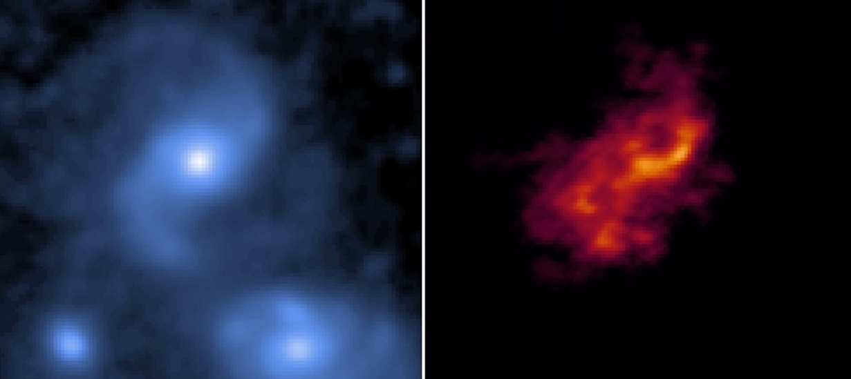 Distribución de gas estelar y molecular de J0107. / NASA, ALMA