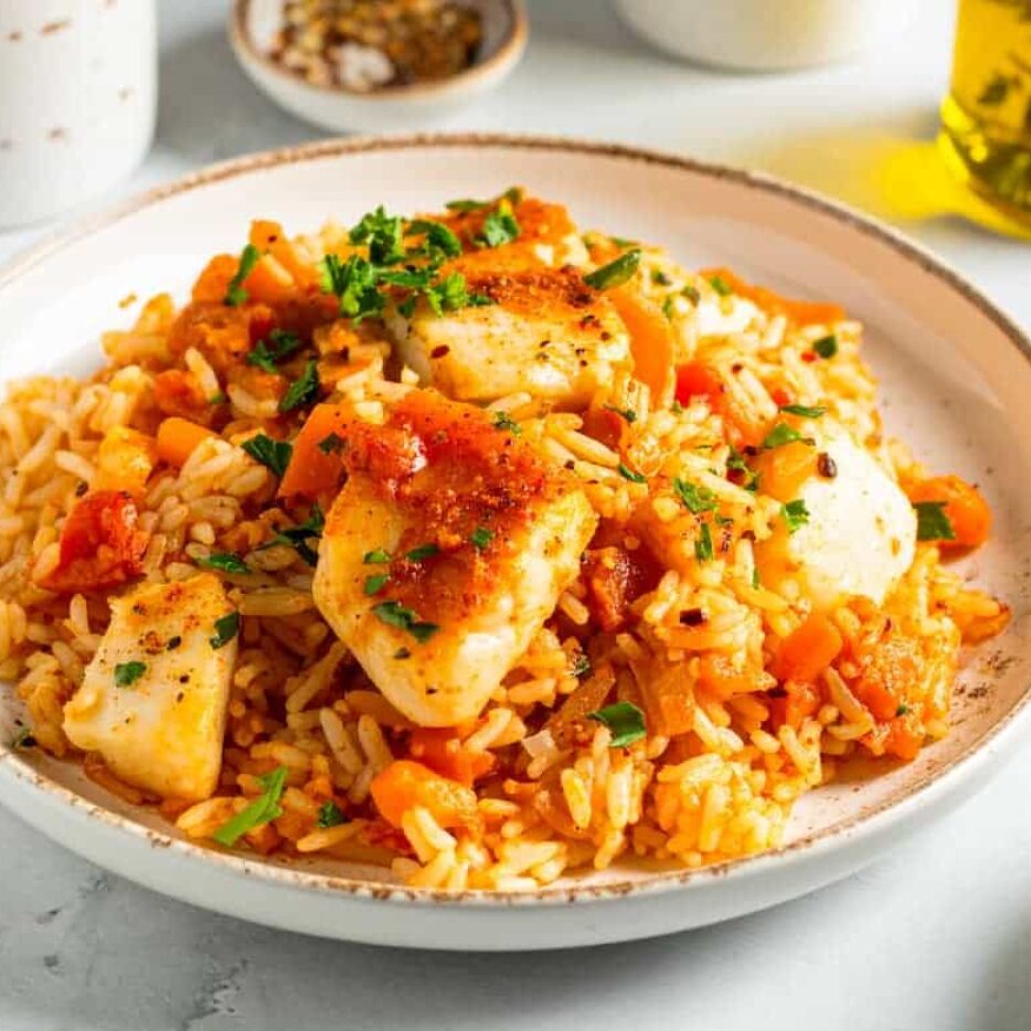 El arroz con bacalao es un plato tradicional de cuchara que combina lo mejor de dos mundos: el arroz, ese comodín que tanto queremos, y el bacalao, que aporta su sabor potente y una textura jugosita que enamora.