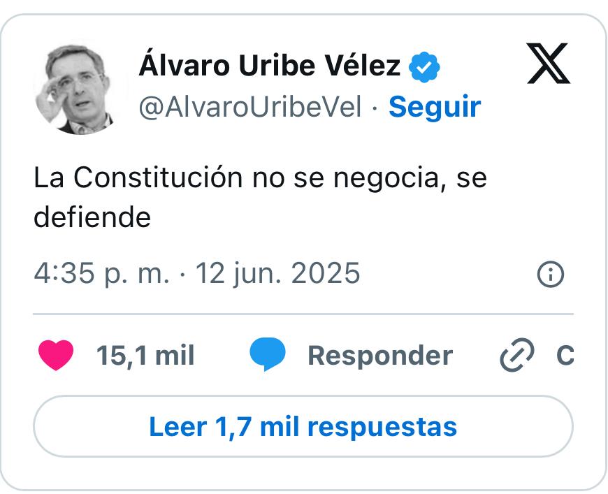 En una jugada que ha despertado asombro, críticas y no poca indignación, el expresidente colombiano Álvaro Uribe Vélez reapareció en la arena pública proclamándose defensor férreo de la Constitución que, en su momento, reformó para perpetuarse en el poder. “La Constitución no se negocia, se defiende”, escribió en su cuenta de X (antes Twitter), aludiendo al decreto firmado por el presidente Gustavo Petro para convocar a una consulta popular luego de que el Senado negara tal iniciativa por 49 votos. Pero las palabras de Uribe no cayeron en el vacío: hicieron eco en la memoria de una nación que aún recuerda el precio político, institucional y ético que pagó cuando el propio Uribe impulsó una modificación a la Carta Magna para permitir su reelección en 2006 y, posteriormente, intentó un segundo cambio para aspirar a un tercer mandato consecutivo.