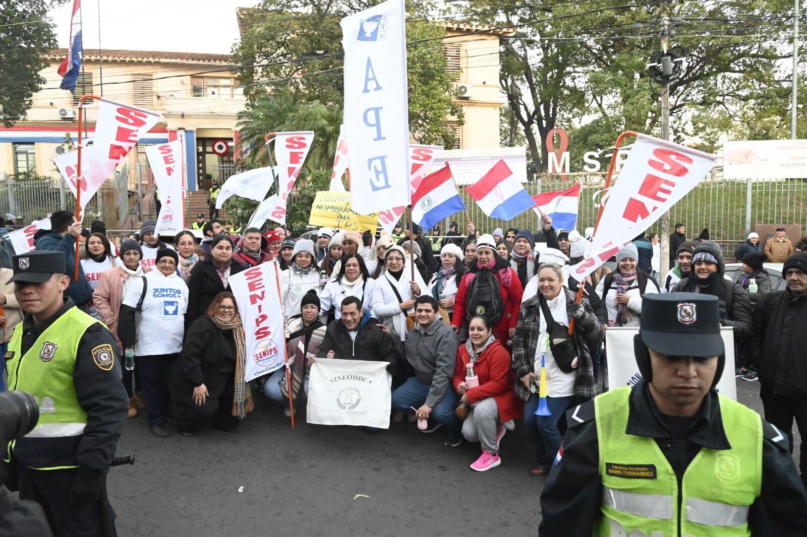 Desde antes de las 7:00, enfermeros de todo el país se concentran sobre la avenida Pettirossi, frente a la sede del Ministerio de Salud.