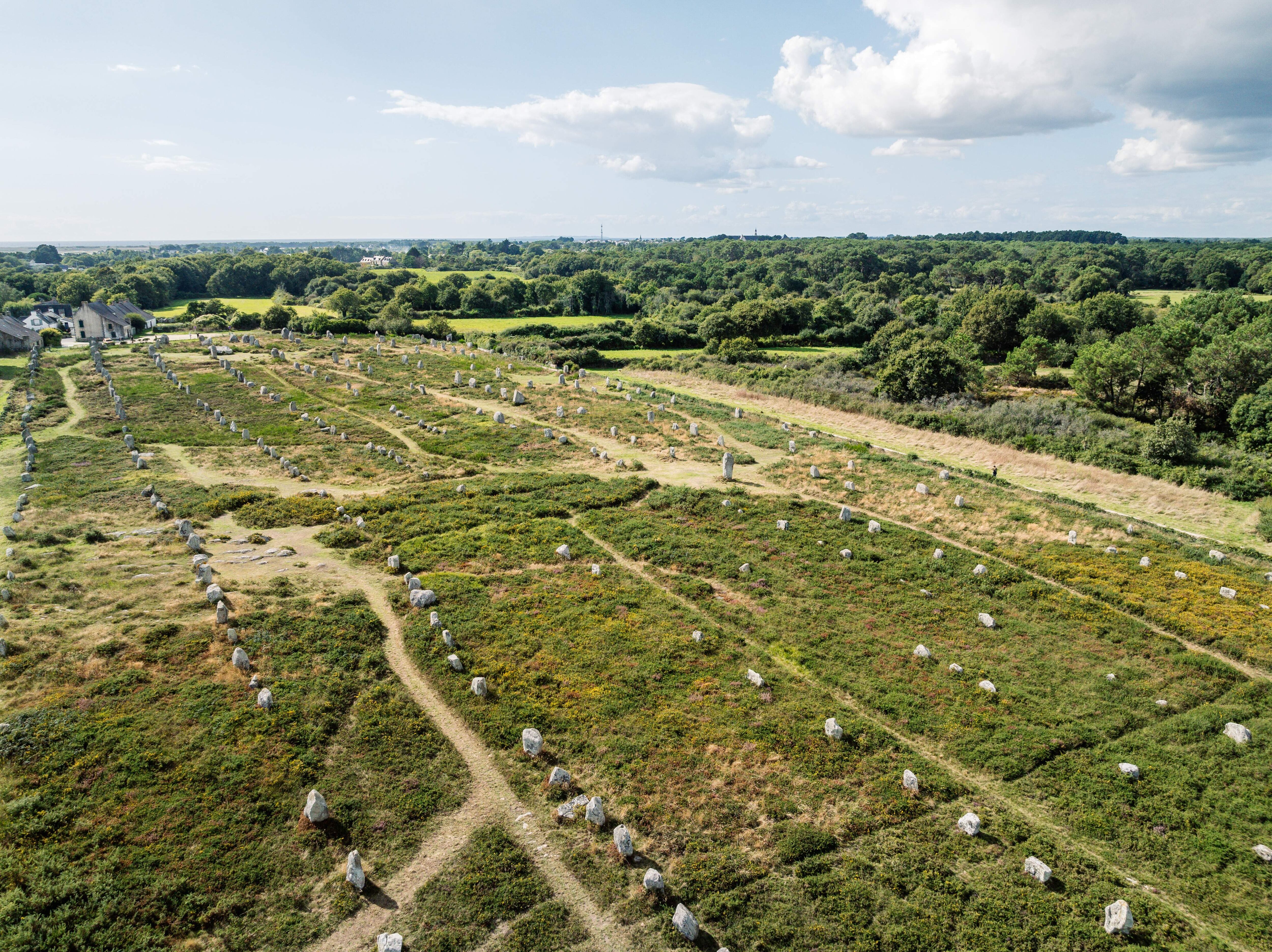 Los enigmáticos alineamientos de Carnac, que son el corazón de la candidatura, se extienden a lo largo de unos cuatro kilómetros, aunque están concentrados en especial en los enclaves llamados Ménec y Kermario, con unos 2.000 menhires.