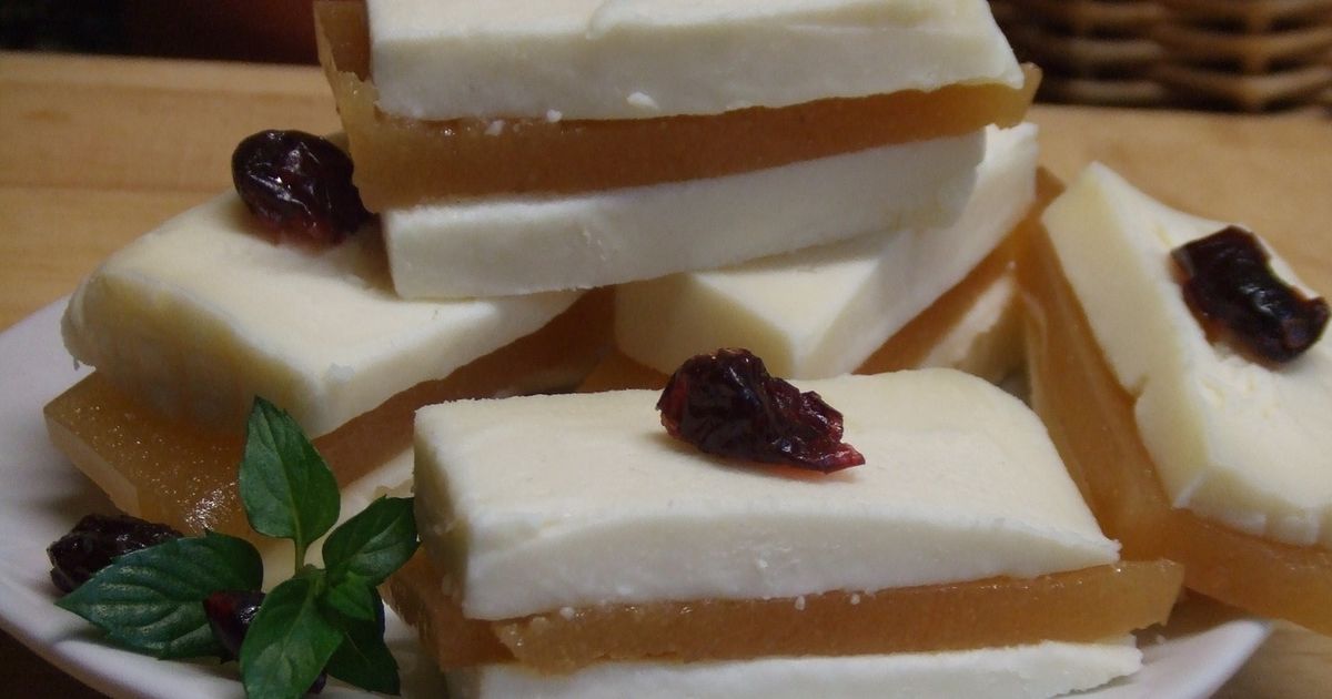- Cortar el dulce (de batata o membrillo) en porciones de tamaño similar al queso.