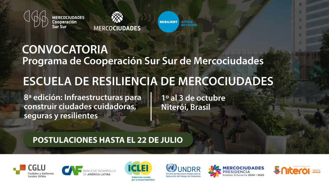 Ante el interés de ciudades de la Red, se decidió ampliar el plazo a candidaturas para participar en la 8ª edición de la Escuela de Resiliencia. El Programa de Cooperación Sur Sur de Mercociudades y R-Cities invitan a funcionarias y funcionarios de Gobiernos locales de las «mercociudades» a participar de la formación que se realizará los días 1°, 2 y 3 de octubre de 2025, en la ciudad de Niterói, Brasil. Es gratuita, con hospedaje y alimentación cubiertos por la organización. Postulaciones abiertas hasta el martes 22 de julio.