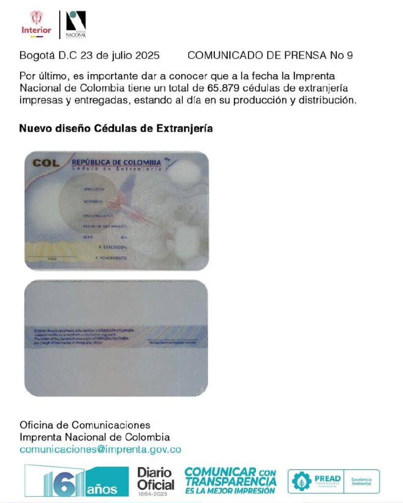 Con esta nueva cédula, el país envía una señal clara: la identidad de quienes eligen vivir y aportar en Colombia se protege con la misma solidez con la que se cuidan los valores fundamentales de la nación. Una modernización que no es solo técnica, sino profundamente simbólica.