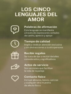Según Chapman, cada persona tiene una o dos formas predominantes de dar y recibir amor. Conocer cuál es el lenguaje principal de nuestra pareja (y el propio) puede marcar la diferencia entre una relación estancada y una profundamente conectada. Estos lenguajes no son reglas rígidas, sino caminos que facilitan la expresión emocional y fortalecen el vínculo afectivo.