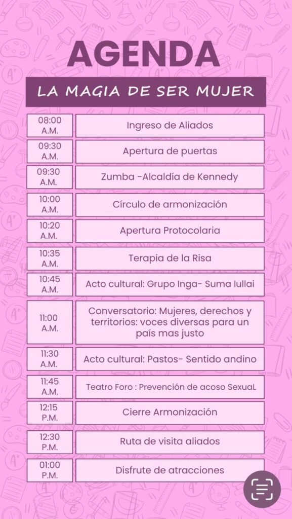 La programación incluye teatro foro, conversatorios, círculos de armonización, actividades culturales y espacios lúdicos diseñados desde una perspectiva de respeto, dignidad y sororidad. Todo con el propósito de visibilizar a las mujeres como agentes de cambio, reconocer sus luchas y dignificar su papel en la transformación social.