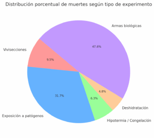Infección con patógenos intencional: Enfermedades como la peste, cólera, ántrax, viruela inyectadas a prisioneros, estudiando su desarrollo.