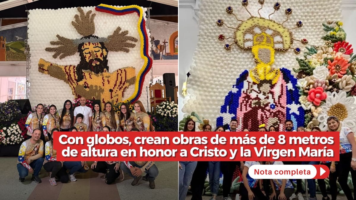 Más de 20 artistas venezolanos unieron su talento para crear dos murales de globos de 8 y 10 metros de altura en honor a Cristo y a la Virgen de la Consolación. Una iniciativa donde el arte y la fe se entrelazaron y que rápidamente se volvió viral en redes sociales.