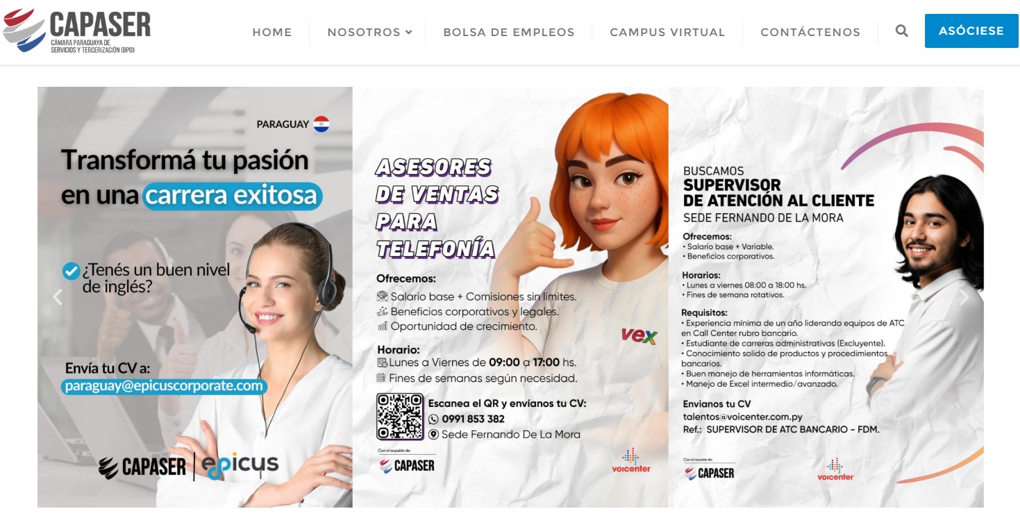 Las vacantes ofrecidas por las empresas socias se actualizan de manera constante según las necesidades del sector. A través del portal oficial capaser.org.py/bolsa-de-empleos, los postulantes pueden consultar los flyers con los detalles de cada puesto y contactar directamente a las compañías por correo o teléfono.