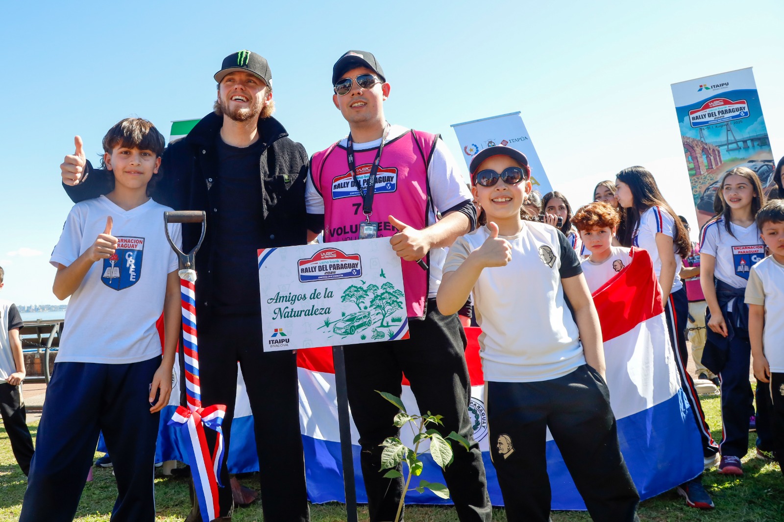 Con la plantación simbólica de árboles nativos, los pilotos Diego Domínguez, Fabrizio Zaldívar, Oliver Solberg y Yohan Rossel marcaron el cierre de la campaña de educación ambiental y arborización por un WRC ueno Rally del Paraguay más sustentable. Esta iniciativa fue impulsada por la organización del WRC, la Itaipú Binacional, la Entidad Binacional Yacyretá, La Gobernación de Itapúa y otras instituciones que acompañaron el despliegue deportivo con acciones de impacto positivo.