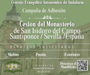El Consejo Evangélico Autonómico de Andalucía (CEAA) ha iniciado una campaña internacional de recogida de firmas en apoyo a la solicitud presentada ante la Junta de Andalucía para la cesión de espacios del histórico Monasterio de San Isidoro del Campo, en Santiponce.