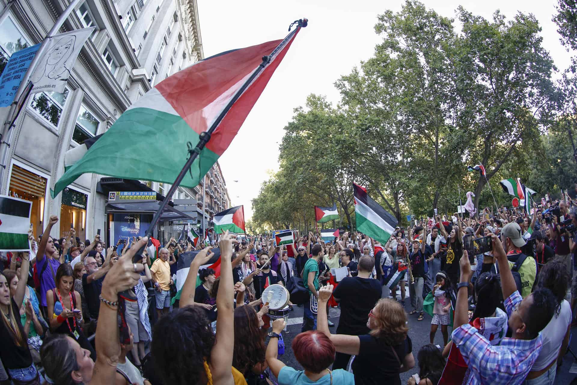 Pese al amplio dispositivo policial que se había desplegado en la capital, los manifestantes propalestinos lograron traspasar el perímetro de seguridad y ocupar la calzada, cortando diversos tramos del recorrido de la Vuelta en protesta por la participación del equipo ciclista Israel – Premier Tech.