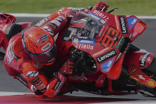 Márquez realizó una gran salida y pasó del cuarto puesto a meterse a la rueda de Bezzecchi, que partió desde la pole y conservó la primera plaza durante la primera parte de la carrera. Márquez mantuvo la presión al piloto italiano hasta que este cometió un error fatal, se fue largo en una curva en la vuelta 12 (de 37) y se veía superado por el español. Para entonces, el doble campeón del mundo Francesco Bagnaia, compañero de Márquez en el equipo oficial Ducati, ya se había ido al suelo, completando un fin de semana desastroso frente a los tifosi.