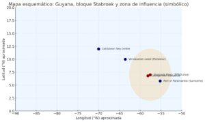 En pocos años, Guyana ha pasado de ser un actor secundario a ser importante en la región en cuanto a energía. El descubrimiento y la rápida producción de yacimientos de petróleo (principalmente en el bloque Stabroek, con la participación de ExxonMobil, Hess y CNOOC) han cambiado su rol. Además de generar ingresos y tensiones internas sobre cómo se gestiona el dinero del petróleo, este auge ha creado un interés externo: proteger las inversiones, asegurar las rutas marítimas y evitar amenazas a las plataformas e instalaciones. Esto explica por qué Estados Unidos tiene una mayor presencia naval en el sur del Caribe.