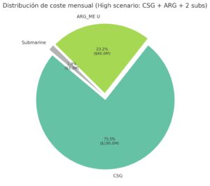* **Mínimo (2 destructores + 1 submarino):** Alrededor de $16.6 millones al mes. Una presencia naval pequeña para patrullar. Es lo más barato y aceptable si la amenaza es baja o solo se busca disuadir.
