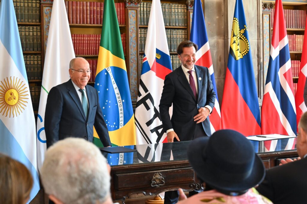 El Tratado de Libre Comercio MERCOSUR – EFTA fue suscripto, por el MERCOSUR, por el Ministro de Relaciones Exteriores, Comercio Internacional y Culto de la Argentina, Gerardo Werthein, el Ministro de Relaciones Exteriores de Brasil, Mauro Vieira, el Ministro de Relaciones Exteriores de Uruguay, Mario Lubetkin, y la Viceministra de Relaciones Económicas e Integración de Paraguay, Patricia Frutos. Por EFTA, los firmantes fueron el Vicepresidente de Suiza, Guy Parmelin, el Ministro de Cultura, Innovación y Educación Superior de Islandia, Logi Már Einarsson, la Ministra de Comercio e Industria de Noruega, Cecilie Myrseth, y el Embajador Frank Buechel en representación de Liechtenstein.