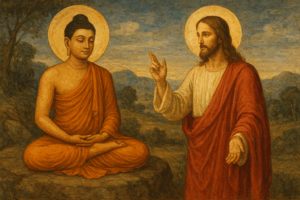 La compasión y el amor: Jesús, en el Sermón del Monte (Beatitudes, «amar a los enemigos», «ser perfectos como el Padre») introduce demandas éticas contundentes, colocando el amor como pivote existencial; el budismo despliega metta (bondad amorosa) y karuṇā (compasión) como prácticas esenciales. En ambas, la compasión actúa de forma ética y transformadora, a pesar de sus diferentes cimientos doctrinales (relación con Dios versus el resultado de una práctica iluminadora).