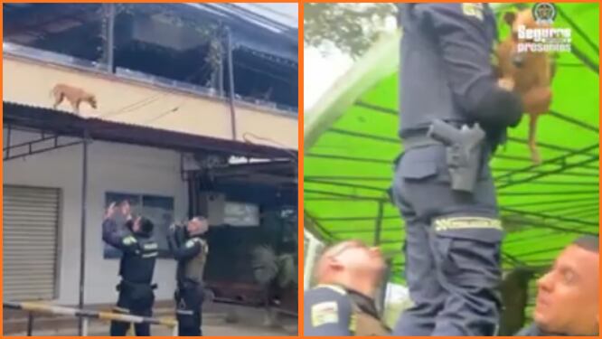 Dos policías de Cartagena que se desplazaban por un sector de la ciudad, dieron una pausa a sus actividades de patrullaje para realizar el rescate de un perro en condición de abandono que permanecía en el techo de una vivienda, escena que fue captada en video y difundida en redes sociales.