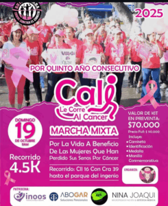 Acompañamos a mujeres valientes que han vencido el cáncer y a otras que siguen luchando con el alma. El domingo 19 de octubre, en la 5.ª carrera “Cali le corre al cáncer”, los verbos no fueron competir ni ganar, sino acompañar, abrazar, concientizar… y, sobre todo, amar.
