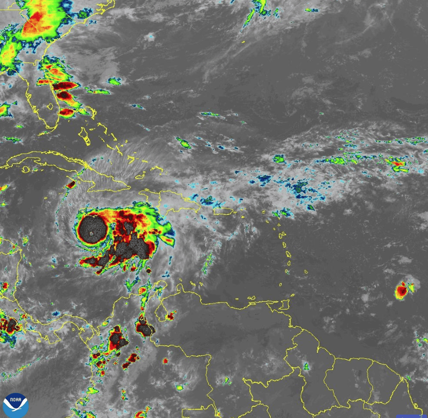Los vientos máximos sostenidos están cerca de 230 km/h con ráfagas más altas. Melissa es un huracán de categoría 4.