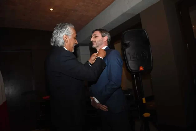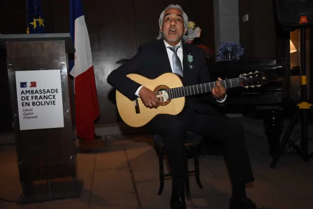 En un gesto de aprecio mutuo, Claure sorprendió al embajador Fontan al entregarle la Condecoración de la Fundación Cueca Boliviana, pañuelos y sus discos. La velada concluyó con un íntimo broche de oro, cuando el nuevo Caballero tomó su guitarra, anunciando: «Voy a agradecer a todos cantando un par de canciones», cerrando la noche con la melodía de la cueca que lo elevó al reconocimiento mundial.