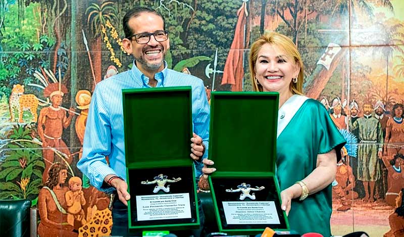 La expresidenta Jeanine Áñez, el gobernador Luis Fernando Camacho y el excívico Marco Antonio Pumari recibieron este jueves reconocimientos del Comité pro Santa Cruz por la lucha y resistencia durante la crisis de 2019 y que los llevó a estar encarcelados.