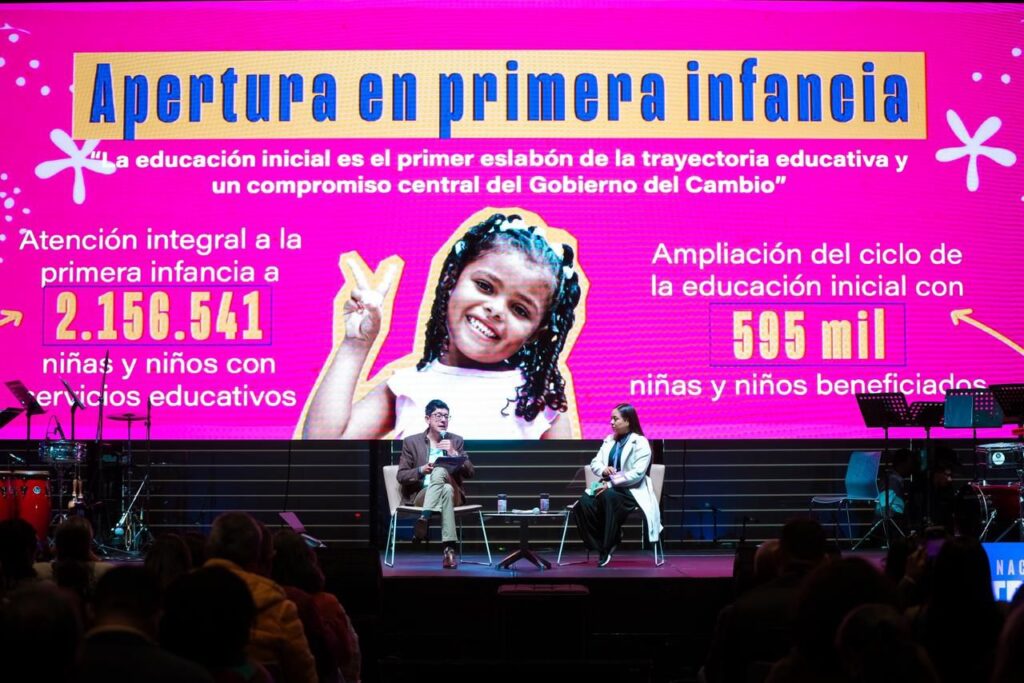 El fortalecimiento de la educación inicial se reflejó en la atención integral a más de 2,1 millones de niñas y niños, así como la matrícula oficial de 595 mil niños y niñas en primera infancia. Asimismo, 5.278 establecimientos educativos implementaron Centros de Interés, promoviendo una formación integral que reconoce al estudiante como un ser humano pleno, más allá de lo puramente académico. Programas como la jornada extendida beneficiaron a cerca de un millón de estudiantes, mientras que la mejora de infraestructura educativa permitió la ampliación o adecuación de 9.846 ambientes de aprendizaje, priorizando sedes rurales, que recibieron el 86 % de estas inversiones.