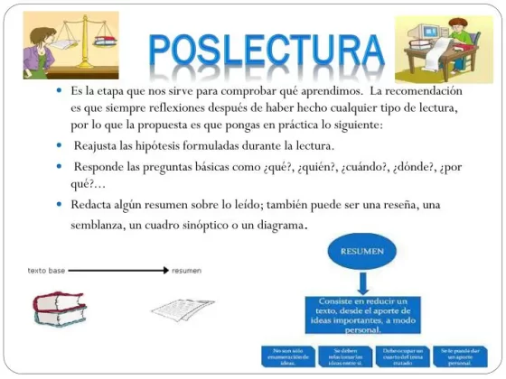 - Convierte la información en conocimiento. Leer es recibir información; la postlectura es el proceso activo de transformar esa información en conocimiento propio que puede ser recuperado y utilizado.