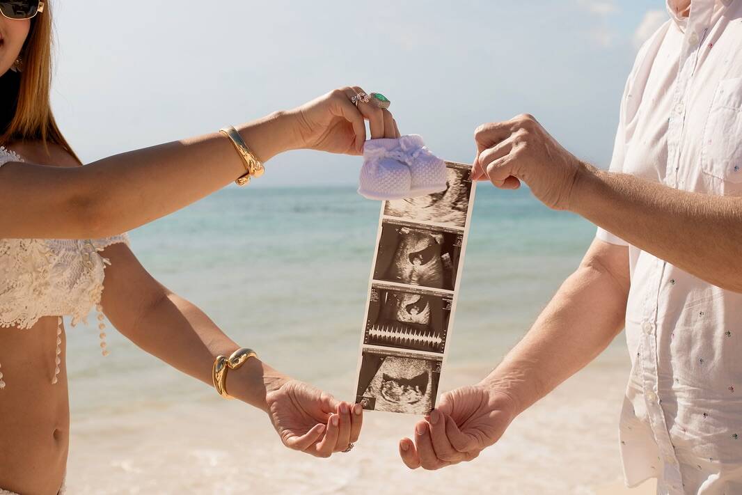 Con una producción de fotos al borde del mar, Roberto González Vaesken y su doña Kallytha Lopes, anunciaron que llegó la cigüeña a su casa.