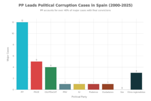 Entre 1978 y diciembre de 2025, el sistema político español produjo un volumen considerable de grandes casos de corrupción con sentencias firmes, notándose mucha evidencia en los partidos mayoritarios y en ciertos grupos territoriales.